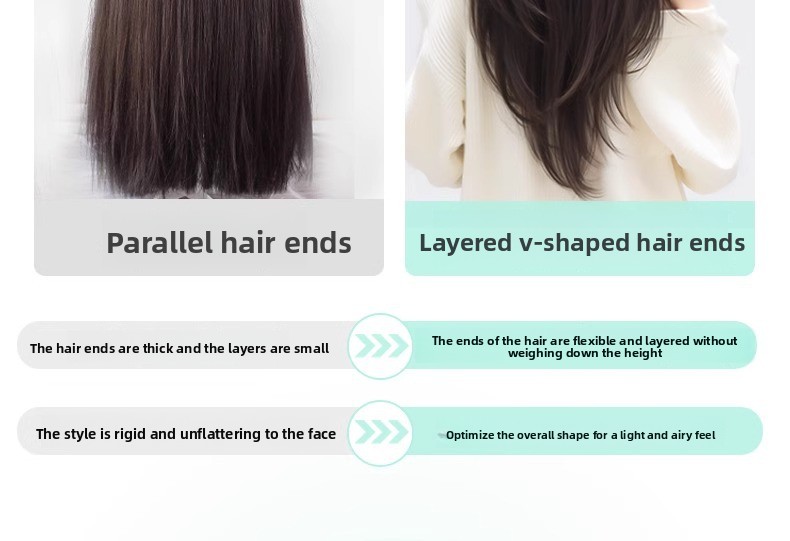 V-Shape Design: Unique V-shaped layered cut for a stylish and voluminous look.